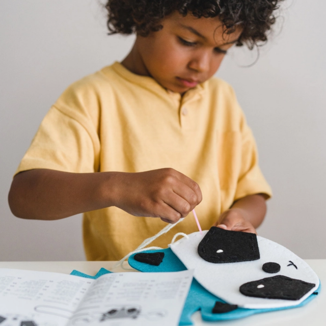 Immagina la gioia di vedere il tuo bambino realizzare una borsa originale, pronta per essere sfoggiata ovunque! Ogni kit è racchiuso in una bellissima scatola di cartone riciclato, perfetta per un regalo eco-friendly. All'interno troverai pezzi di feltro con fori già fustellati, un cinturino, fili colorati e un ago di sicurezza con punta arrotondata, tutto pensato per garantire un'esperienza di cucito sicura e divertente.