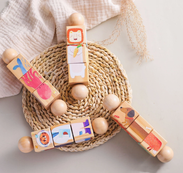 I blocchi, realizzati in legno ecologico, presentano diversi soggetti a tema animale da ordinare e combinare, stimolando il pensiero logico e la crescita cognitiva.