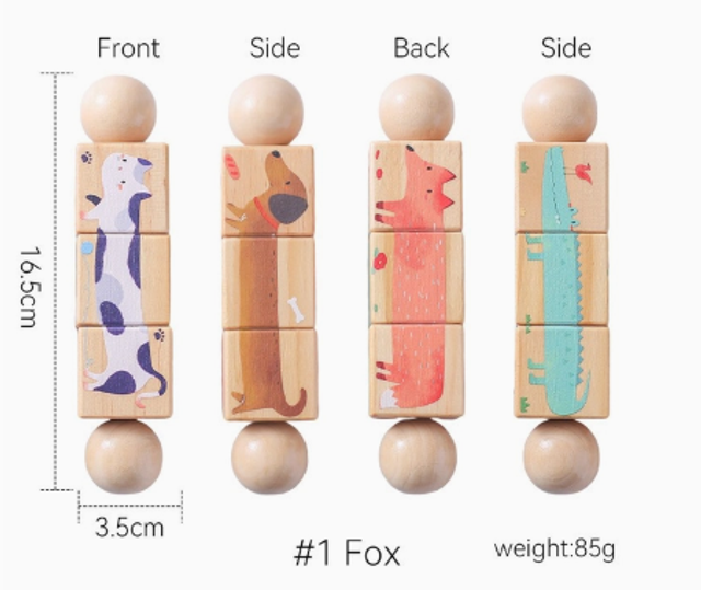 Questo gioco di blocchi in legno con animali da abbinare è pensato per accompagnare i bambini nello sviluppo della memoria, delle capacità di associazione e della coordinazione occhio-mano.