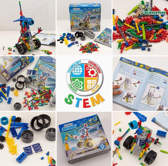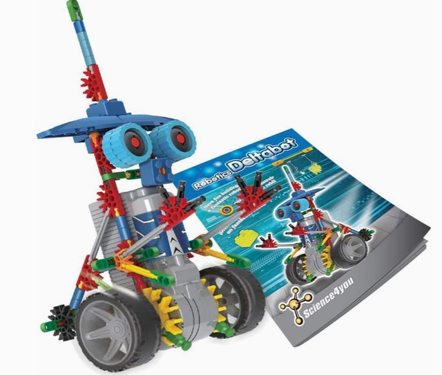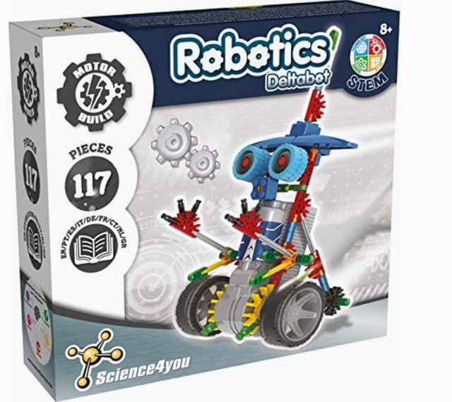 Scopri il mondo della robotica con Robotics Deltabot, il kit di costruzione robot per bambini dai 8 ai 14 anni! Con 117 pezzi e un motore alimentato a batterie AA, il robot prende vita muovendosi avanti e indietro.